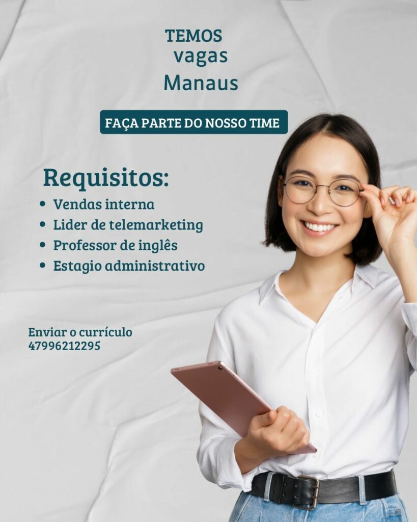 Seleção para seguintes vagas Vendedora interna, Líder de telemarketing, Professor de inglês, Estagiário administrativo; Envie seu currículo!