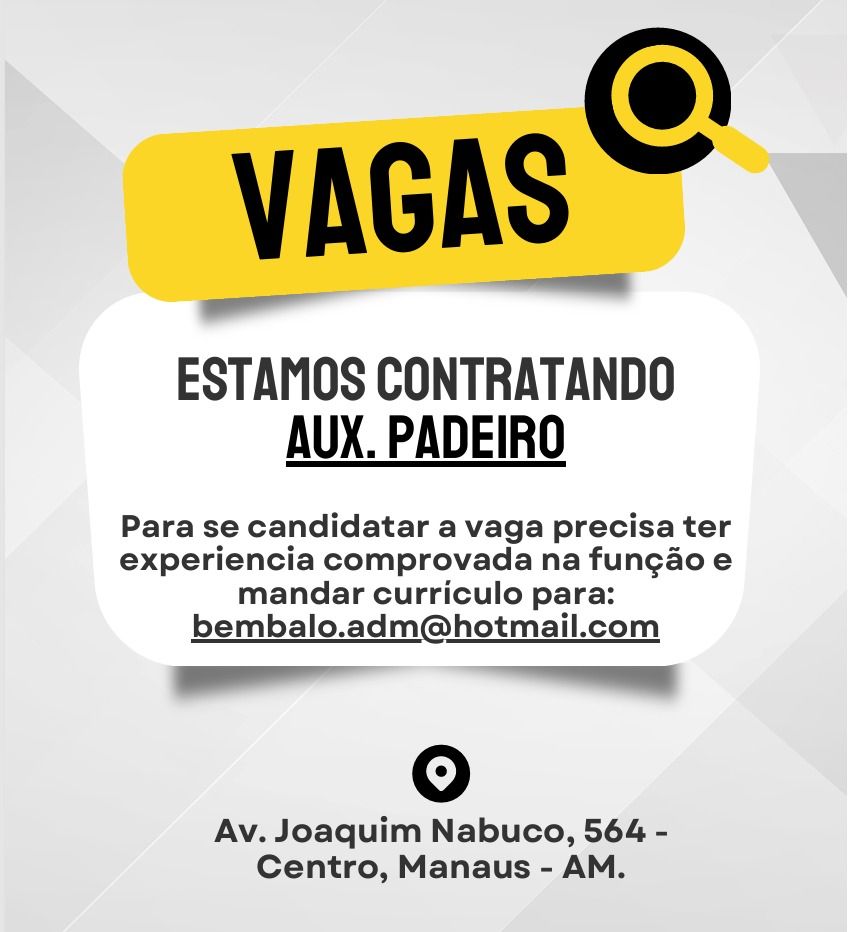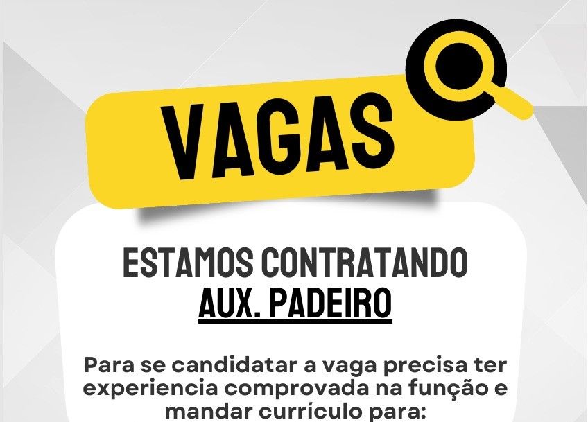 Seleção para vaga de Auxiliar Padeiro; Envie seu currículo!