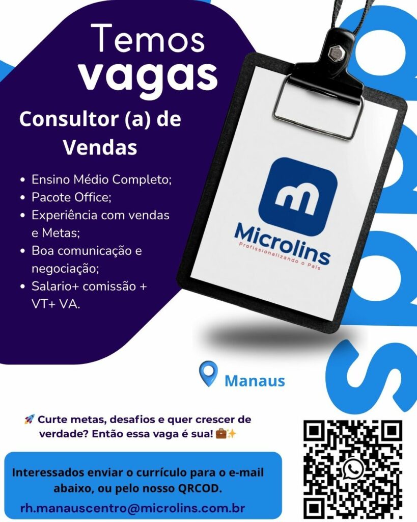 Seleção para vaga de Consultor (a) de vendas; Envie seu currículo!