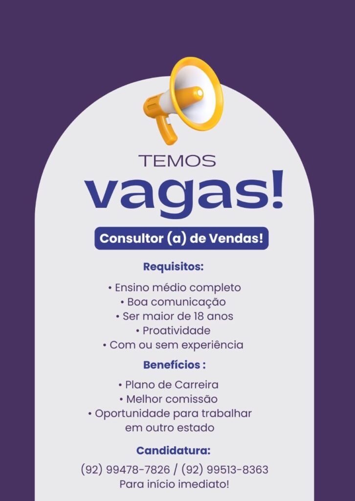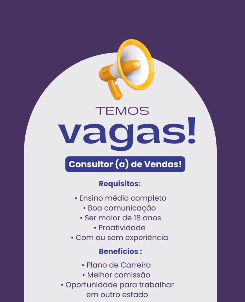 Seleção para vaga de Consultor (a) de vendas; Envie seu currículo!