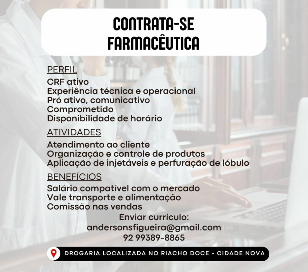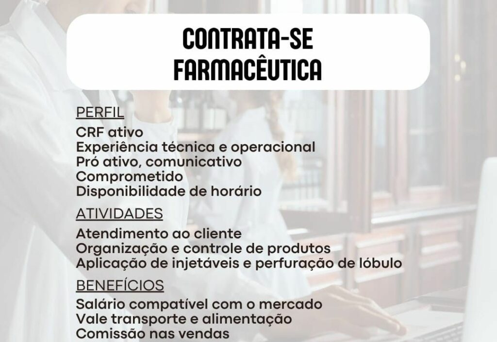 Seleção para vaga de Farmacêutica; Envie seu currículo!