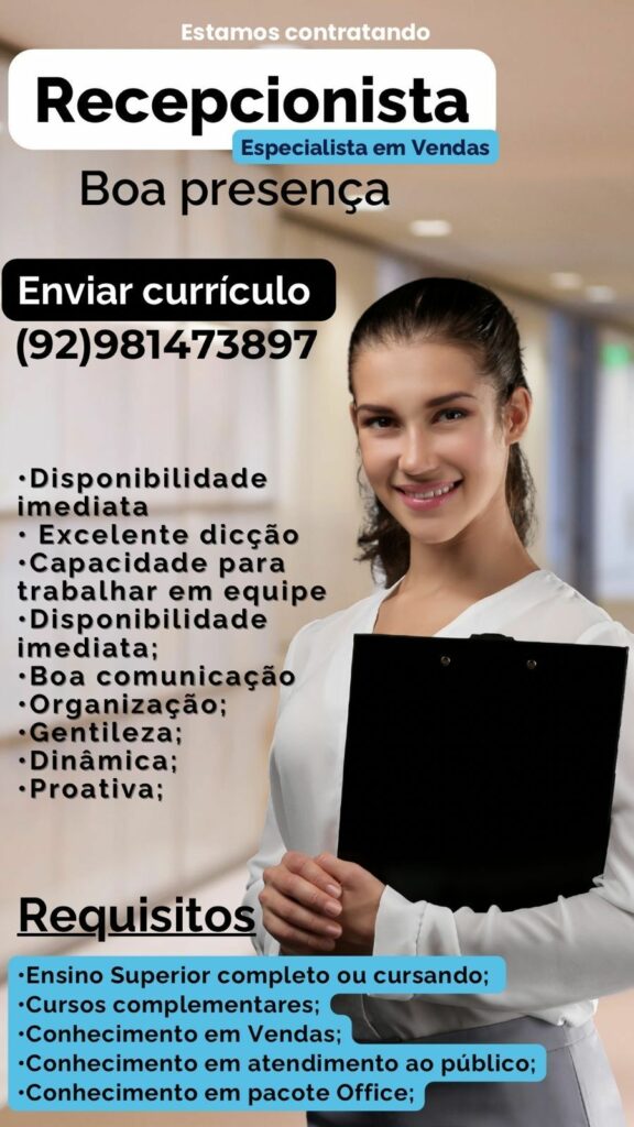 Seleção para vaga de Recepcionista; Envie seu currículo!