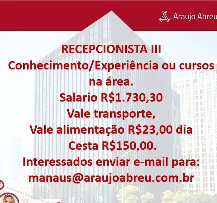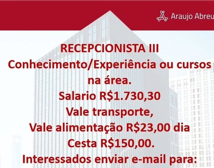 Seleção para vaga de Recepcionista lll; Envie seu currículo!