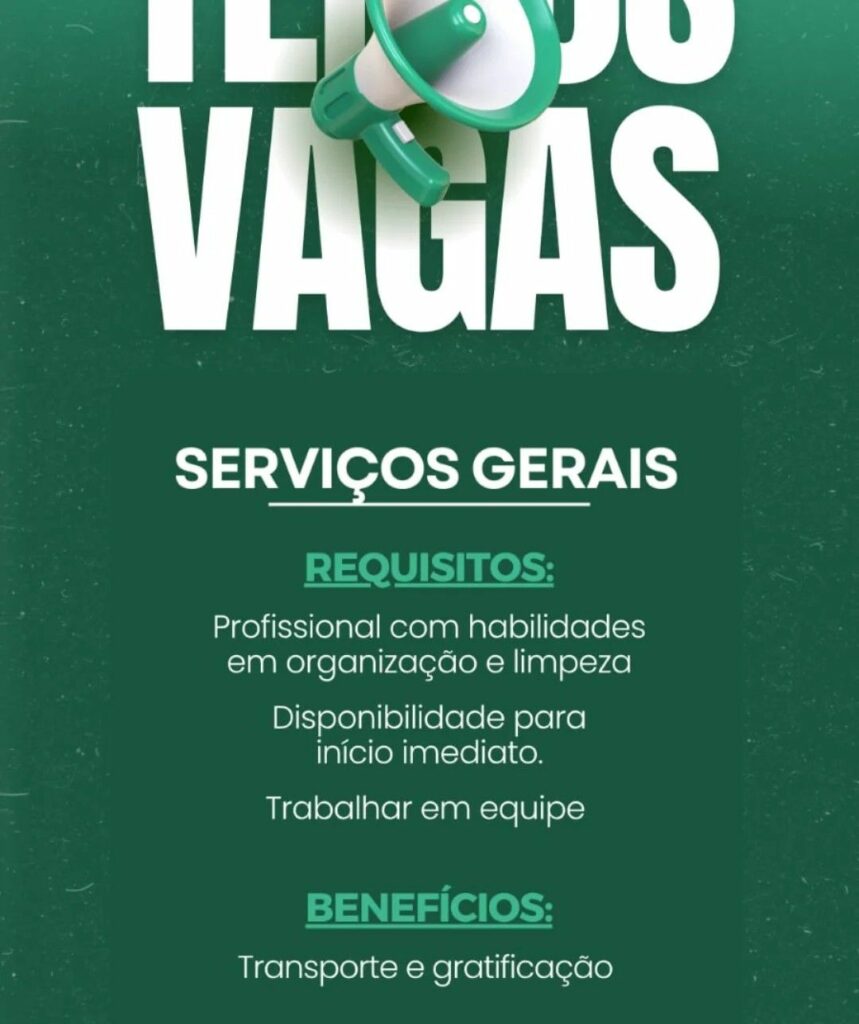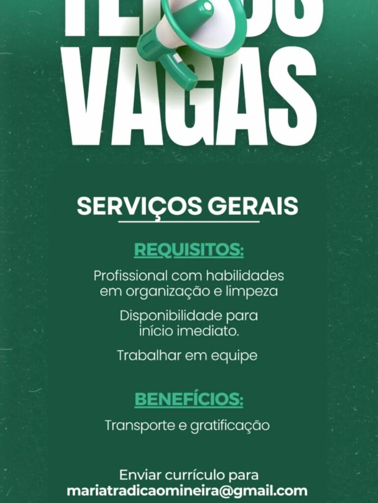 Seleção para vaga de Serviços Gerais; Envie seu currículo!