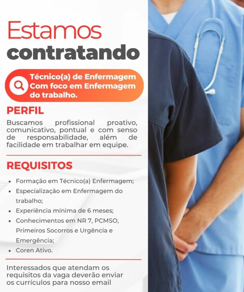Seleção para vaga de Técnico (a) de enfermagem; Envie seu currículo!