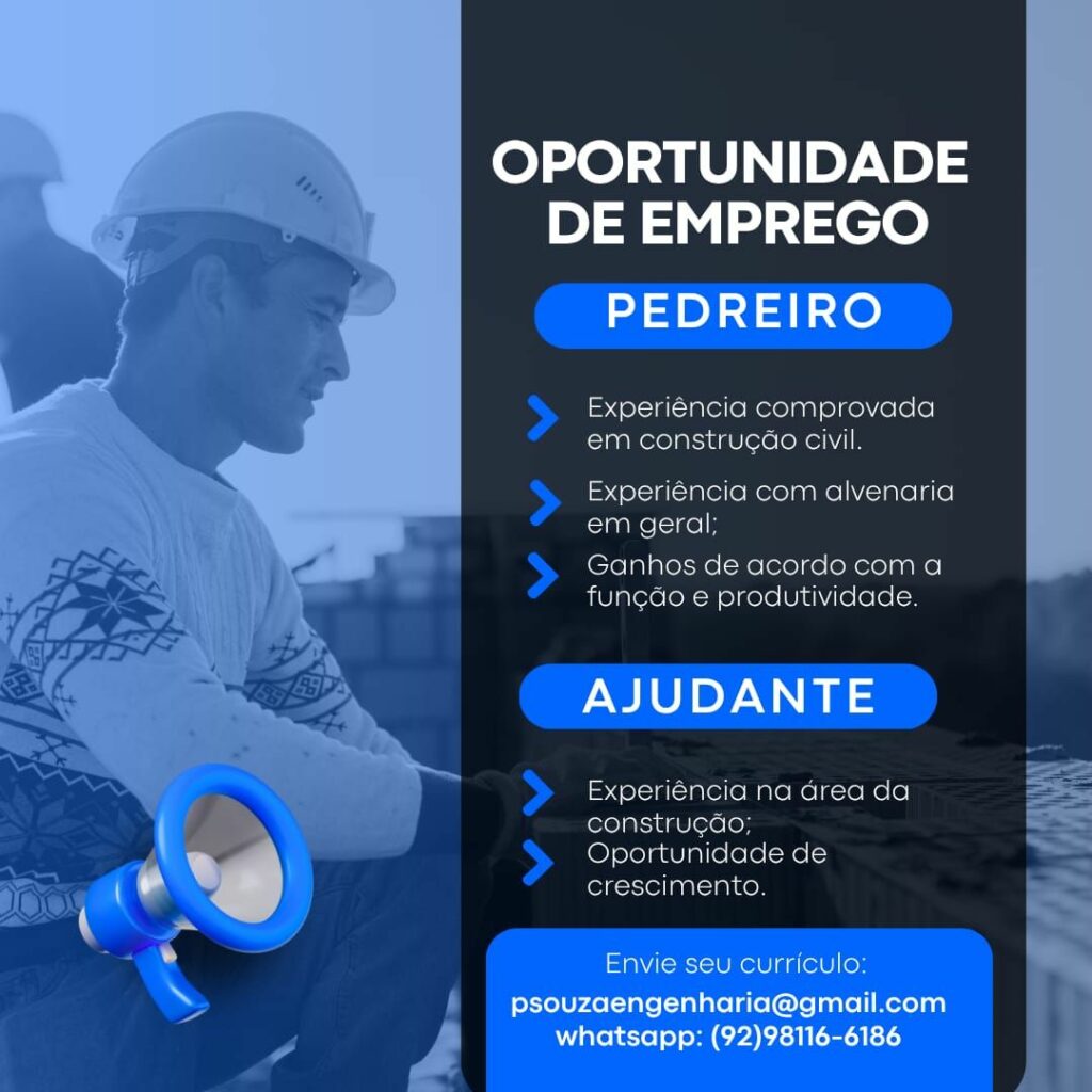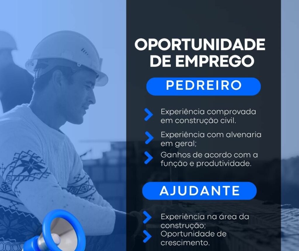 Seleção para vagas de Pedreiro, Ajudante; Envie seu currículo!