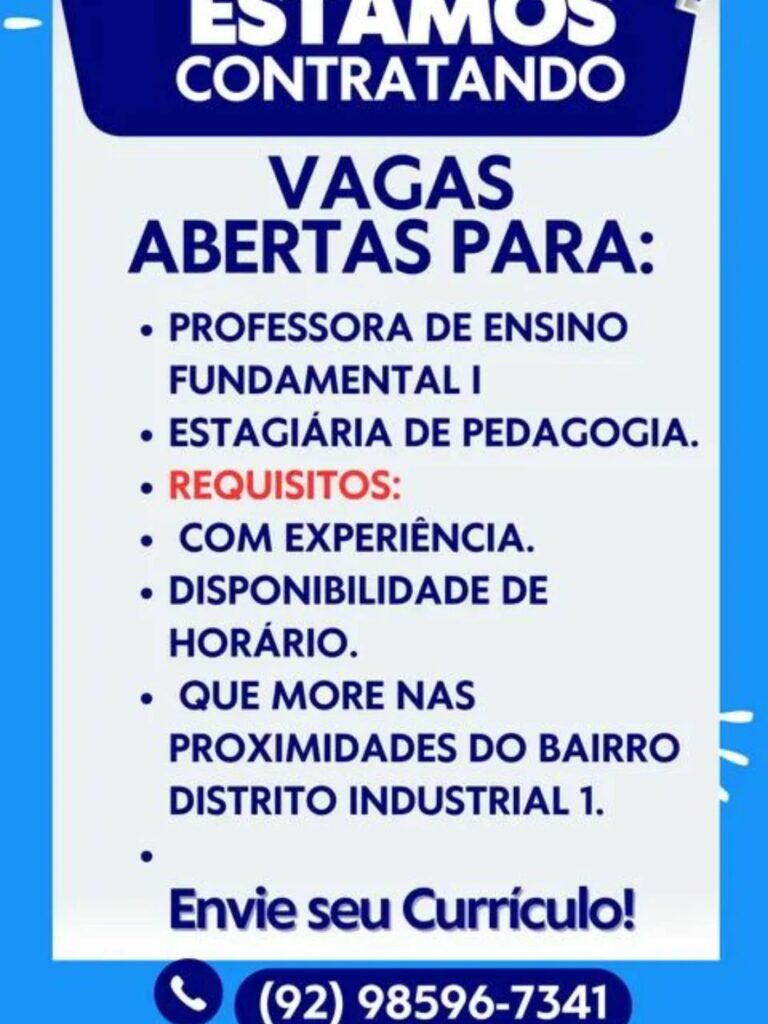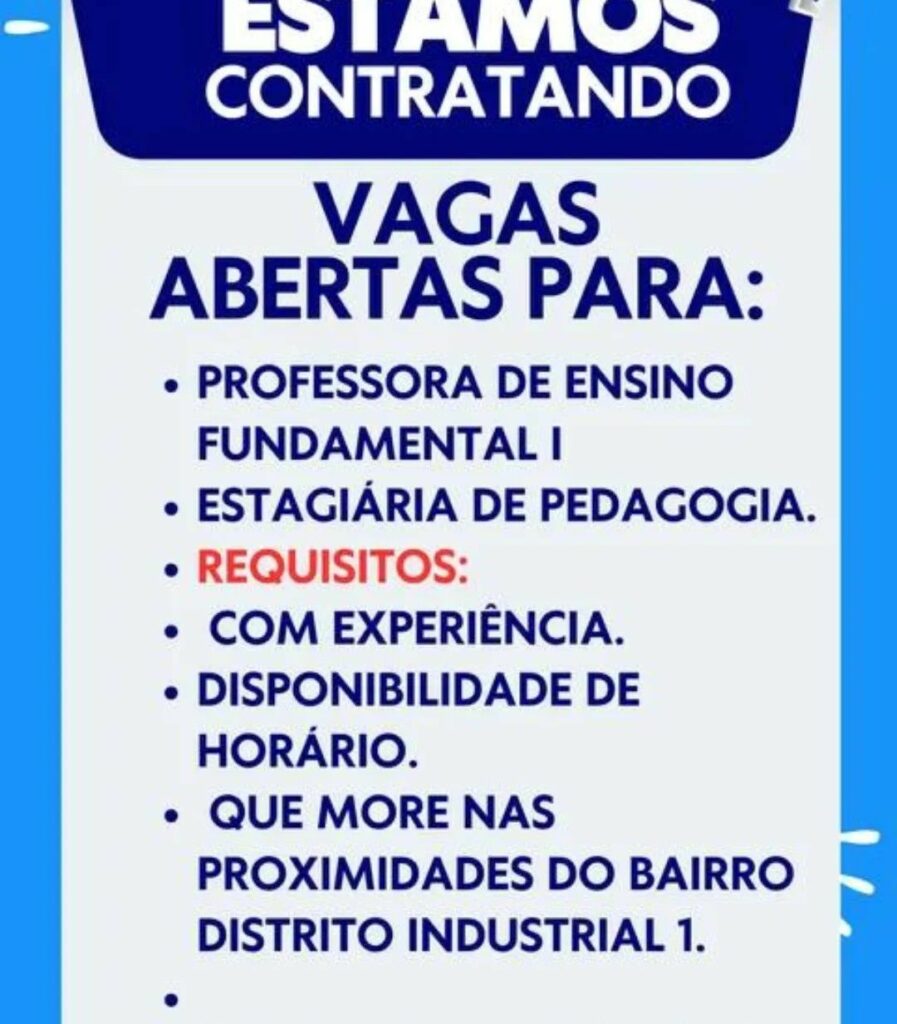 Seleção para vagas de Professora de ensino fundamental l, Estagiária de Pedagogia; Envie seu currículo!