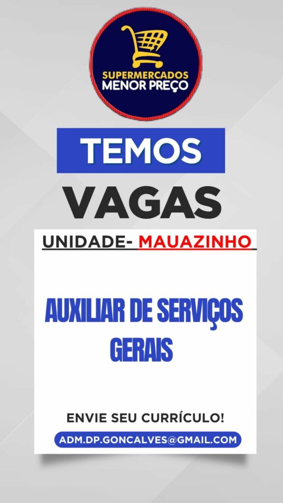 Supermercados Menor preço seleciona Auxiliar de serviços gerais; Envie seu currículo!