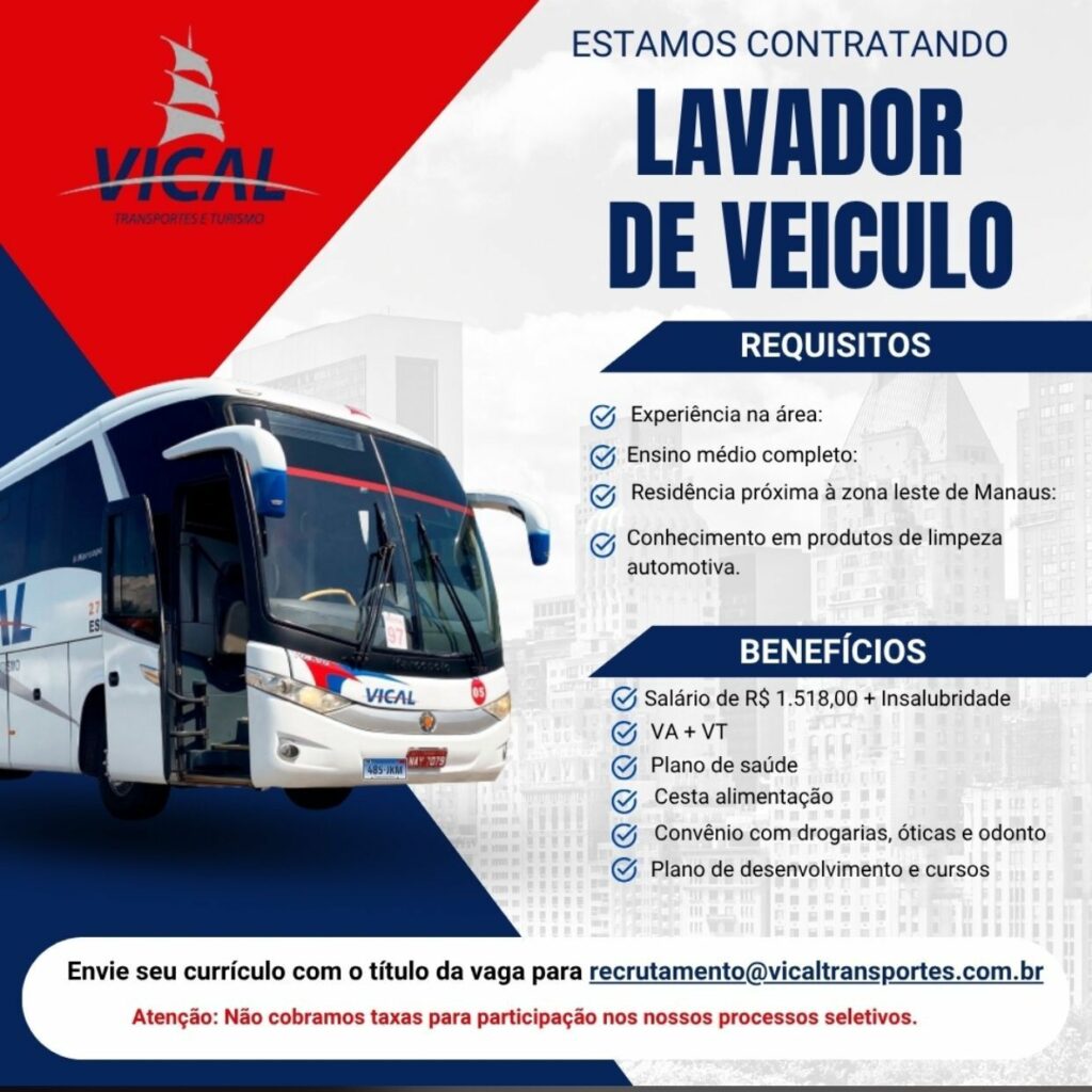 Vical transportes seleciona Lavador de veículos; Envie seu currículo!