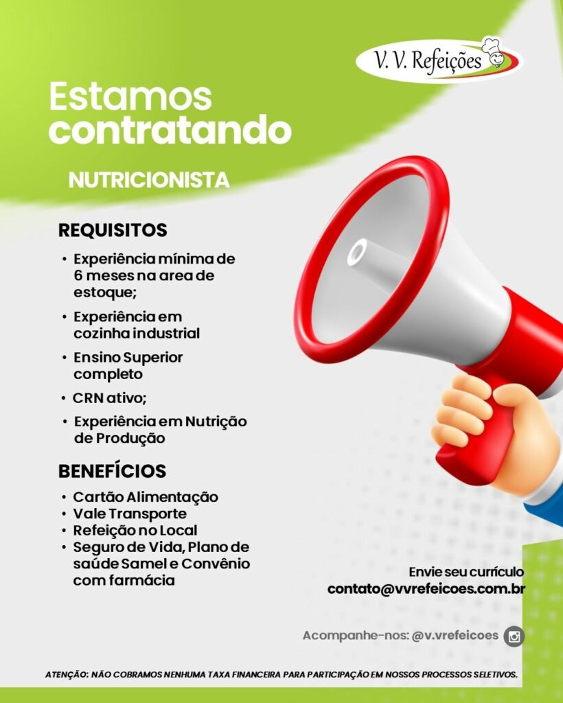 VV refeições seleciona Nutricionista; Envie seu currículo!