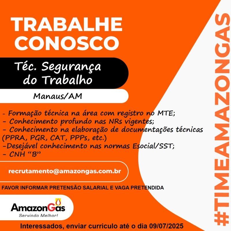 AmazonGás está selecionando para vagas de emprego