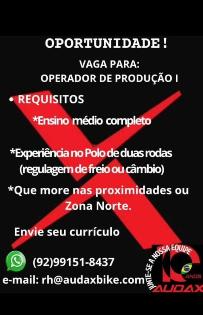 Audax Industria de Bicicletas Seleciona Operador de produção l; Envie seu currículo!