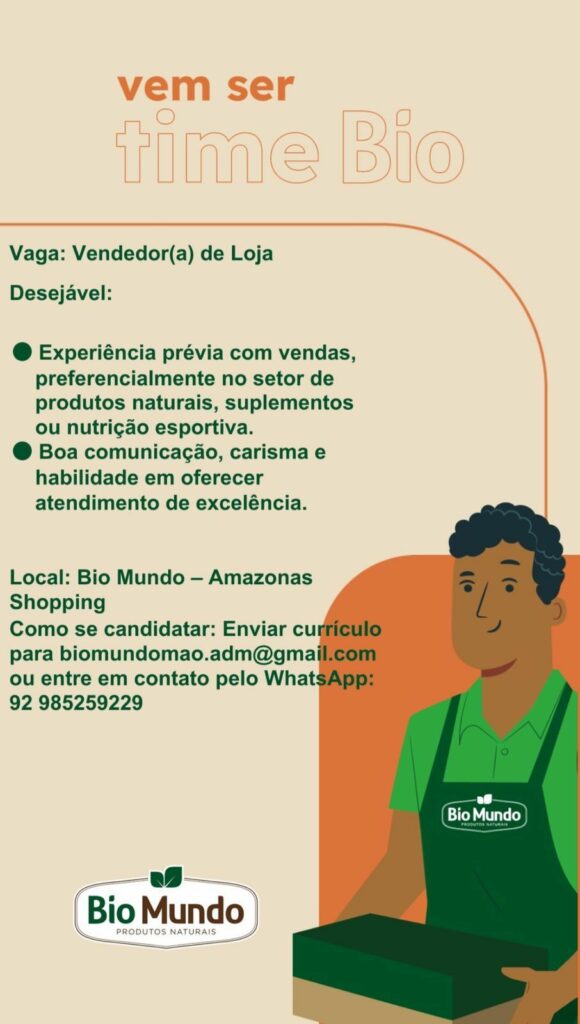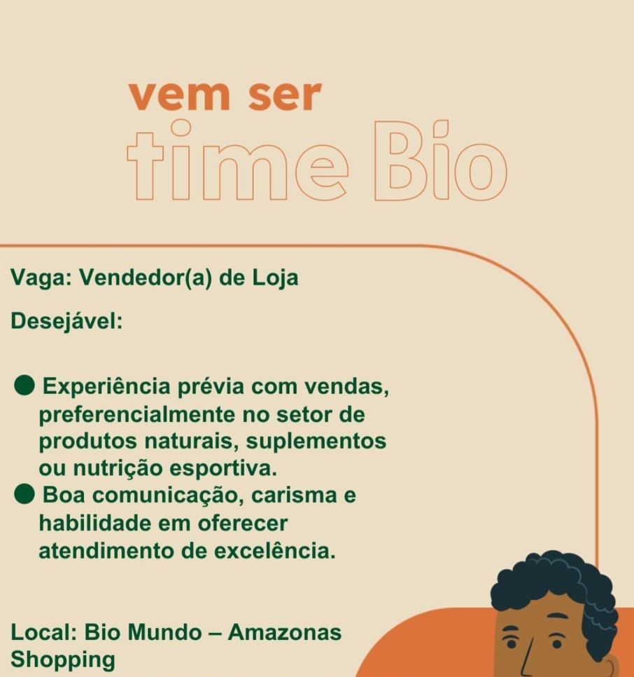 Bio mundo está selecionando Vendedor (a) de Loja; Envie seu currículo!