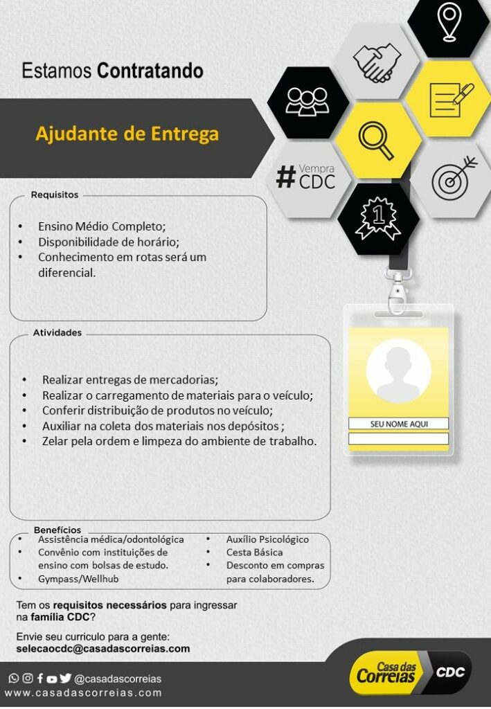 Casa das correias seleciona Ajudante de entrega; Envie seu currículo!