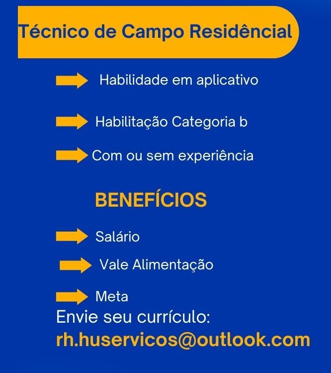 Com ou sem experiência! Empresa está selecionando Técnico de campo residencial; Envie seu currículo!