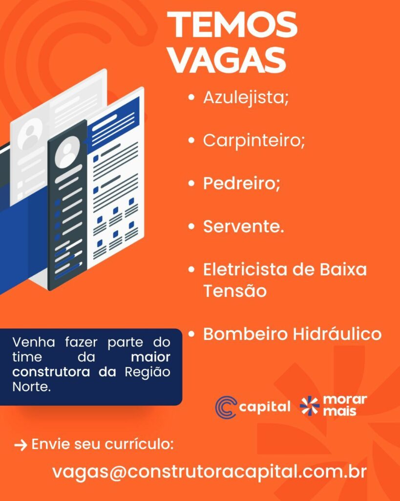 Construtura seleciona Azulejista, Carpinteiro, Pedreiro, Servente, Eletricista de baixa tensão, Bombeiro hidráulico; Envie seu currículo!