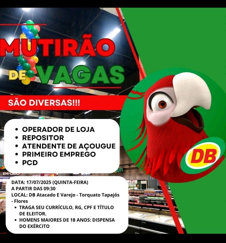 DB Está selecionando Operador de loja, Repositor, Atendente de açougue Primeiro Emprego, pcds; Envie seu currículo!