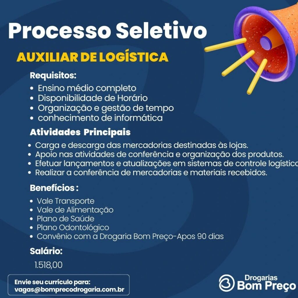 Drogarias Bom Preço seleciona Auxiliar de logística; Envie seu currículo!