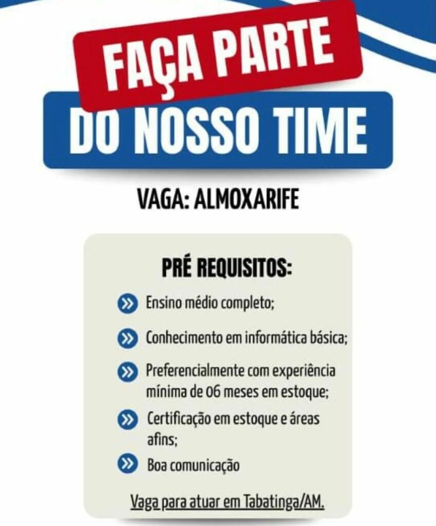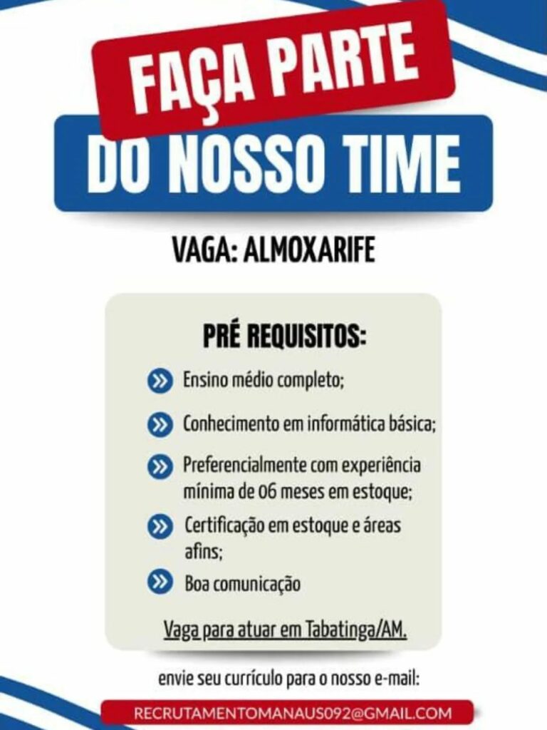 Empresa está selecionando Almoxarife; Envie seu currículo!