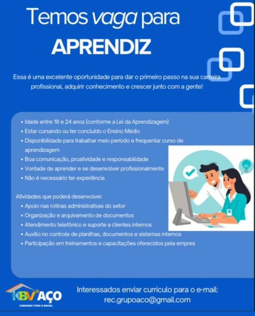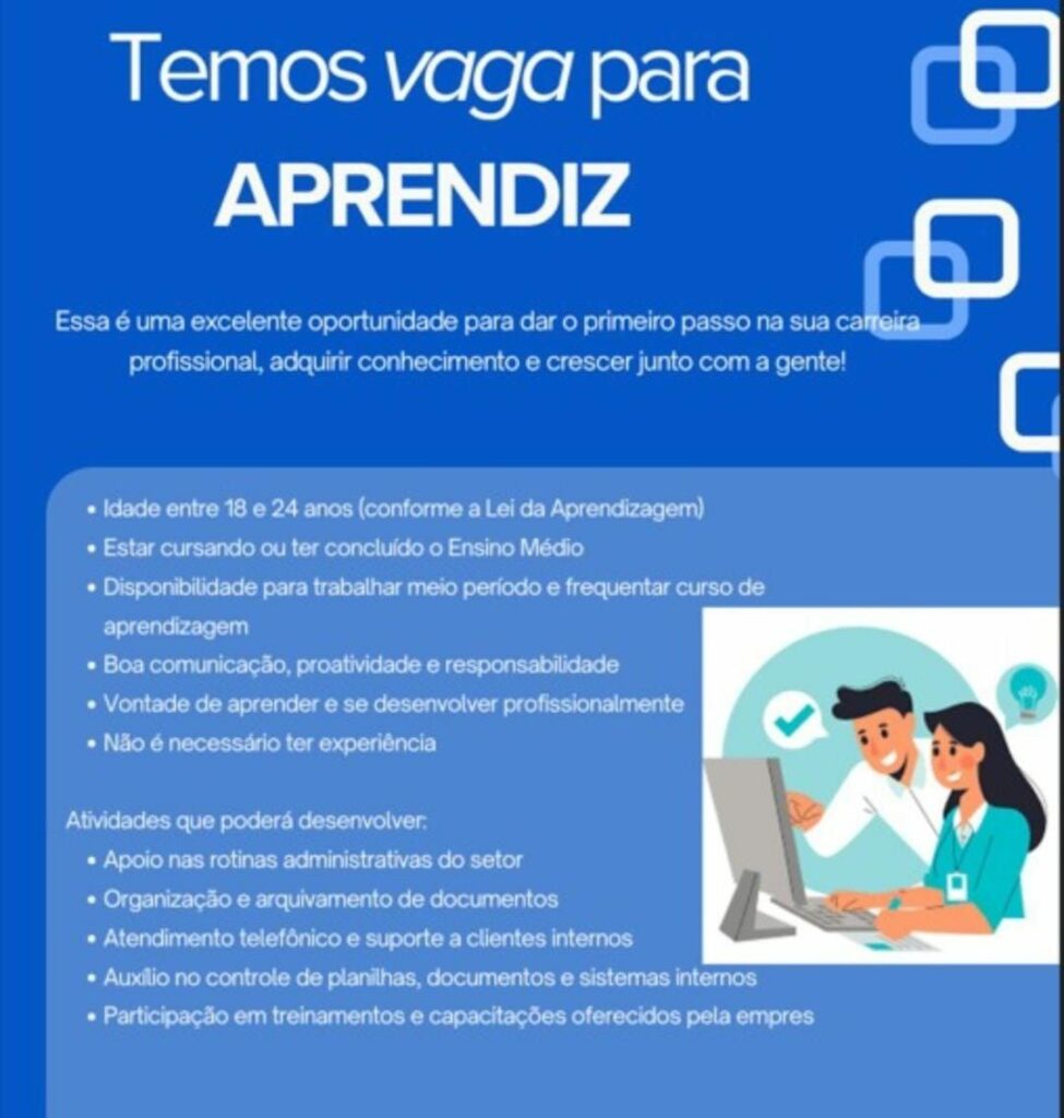 Empresa está selecionando Aprendiz; Envie seu currículo!