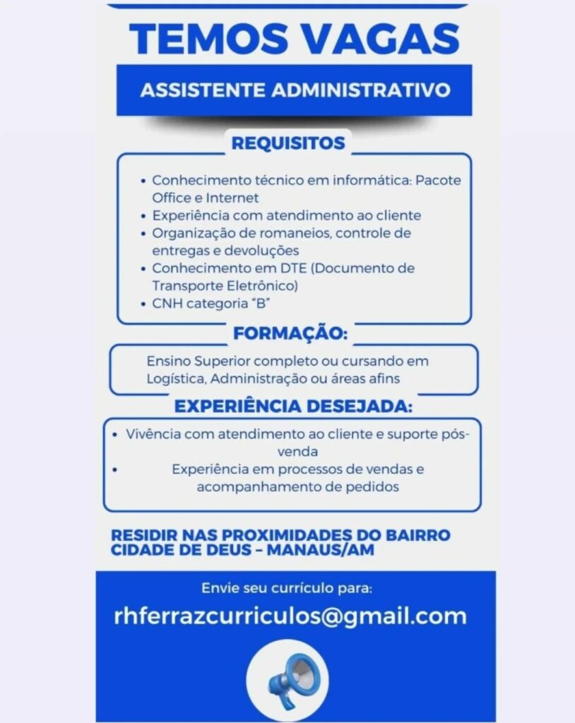 Empresa está selecionando Assistente administrativo; Envie seu currículo!