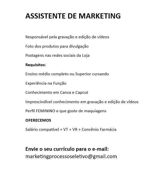 Empresa está selecionando Assistente de marketing; Envie seu currículo!