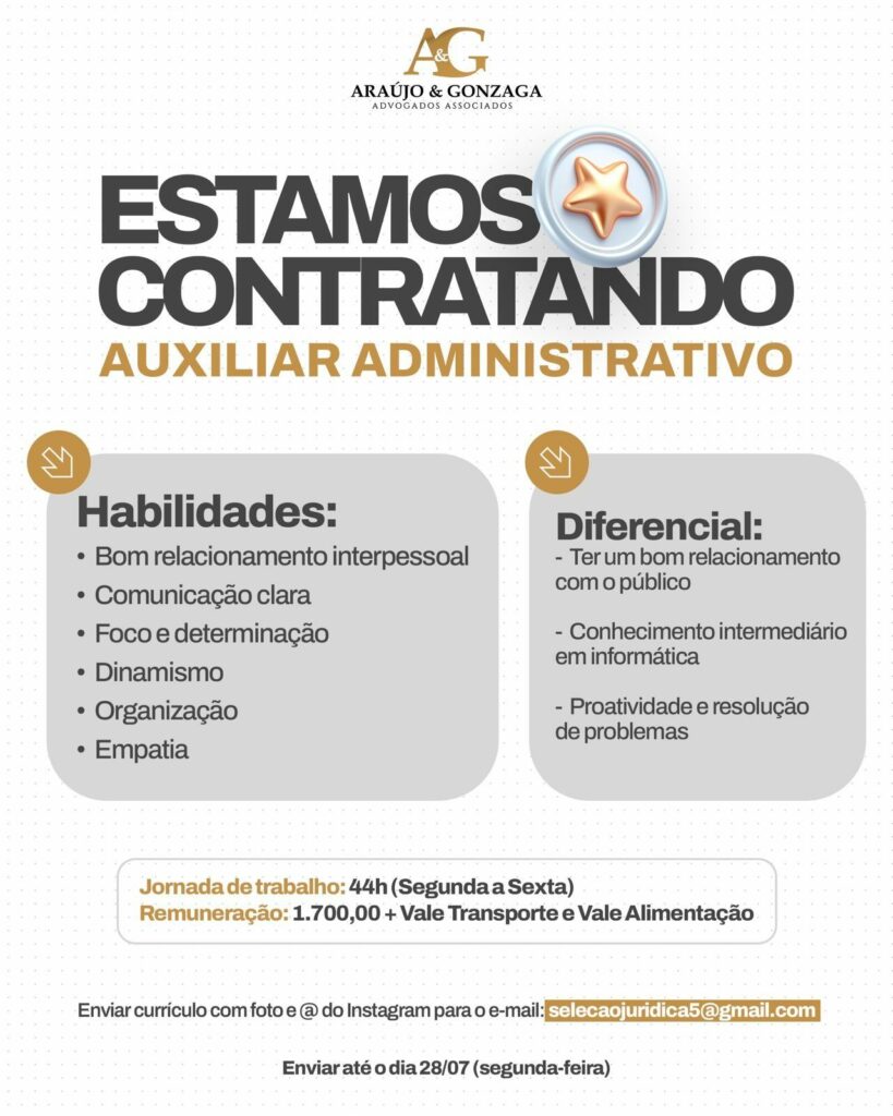 Empresa está selecionando Auxiliar administrativo; Envie seu currículo!