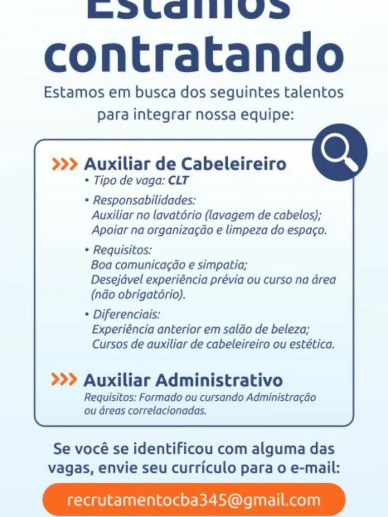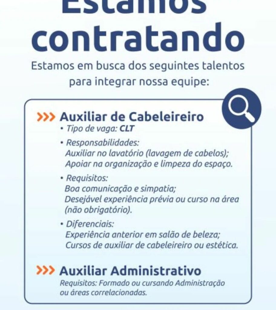 Empresa está selecionando Auxiliar cabeleireiro, Auxiliar administrativo; Envie seu currículo!