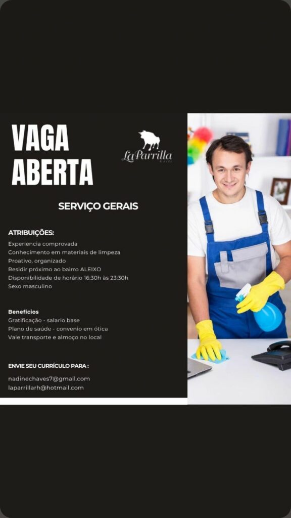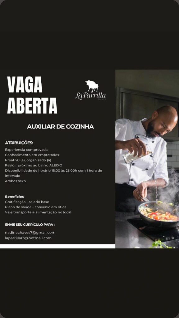Empresa está selecionando Auxiliar de cozinha, Serviços Gerais; Envie seu currículo!