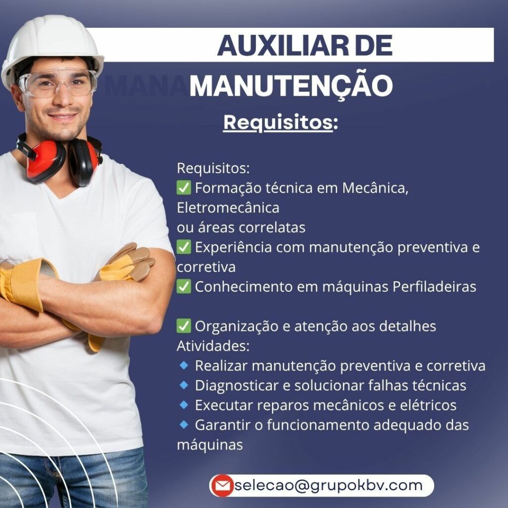 Empresa está selecionando Auxiliar de Manuntenção; Envie seu currículo!