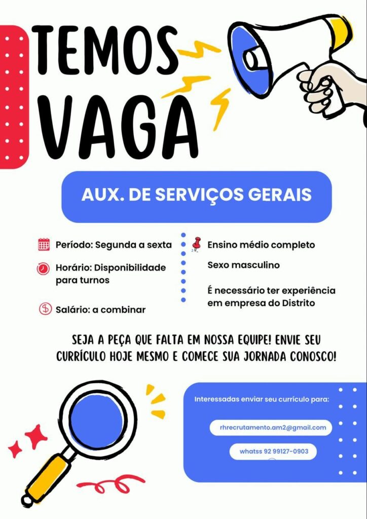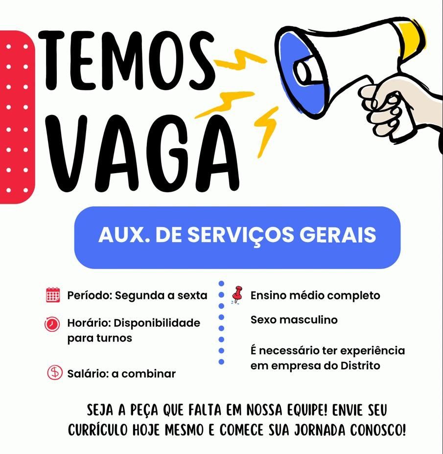 Empresa seleciona para vaga de Auxiliar de serviços gerais ; Envie seu currículo!