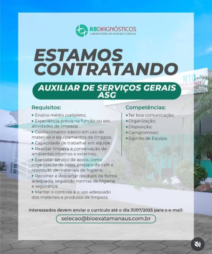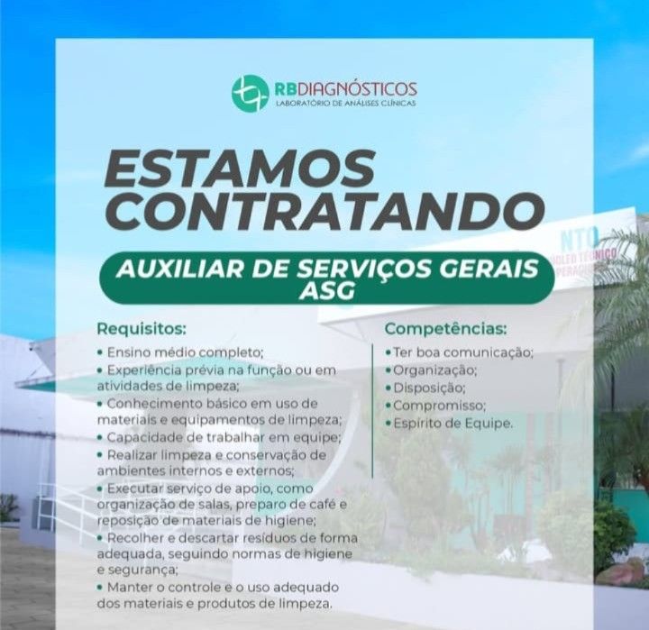 Empresa está selecionando Auxiliar de serviços gerais; Envie seu currículo!