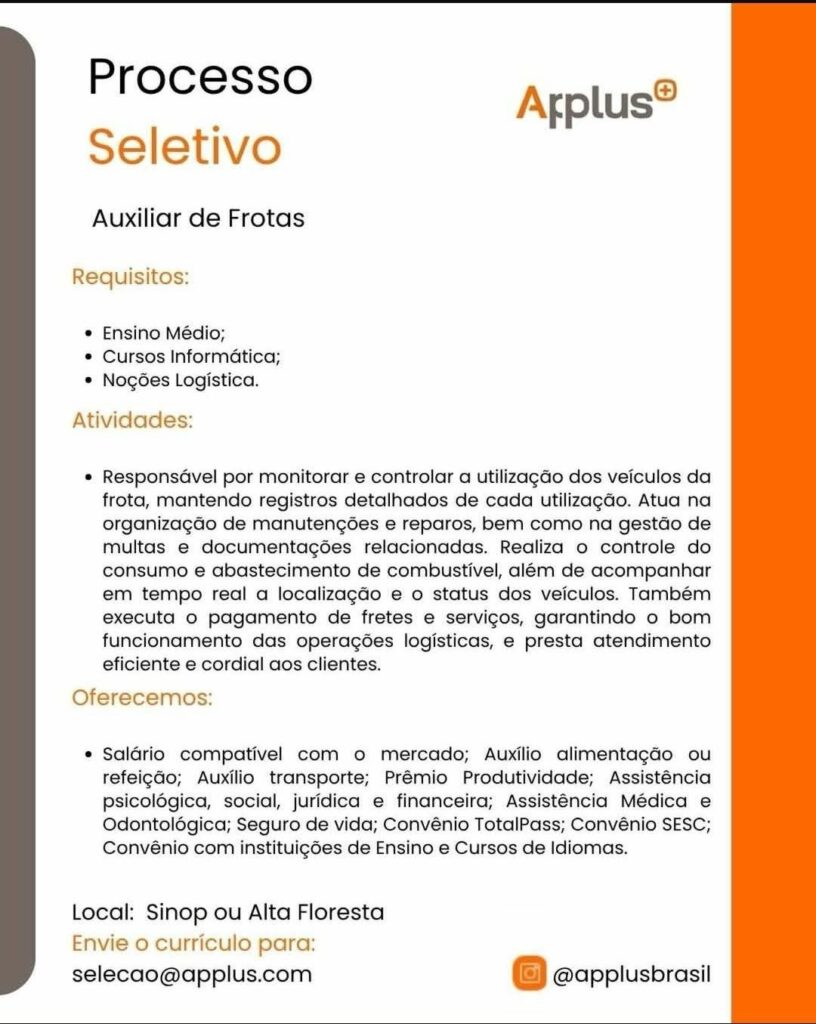 O processo seletivo para esta(s) vaga(s) não cobra absolutamente nada pela sua candidatura. Portanto, jamais aceite qualquer tipo de cobrança para cadastrar seu currículo.