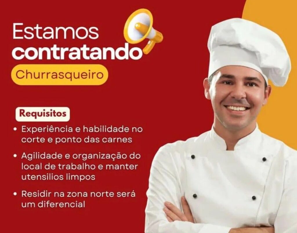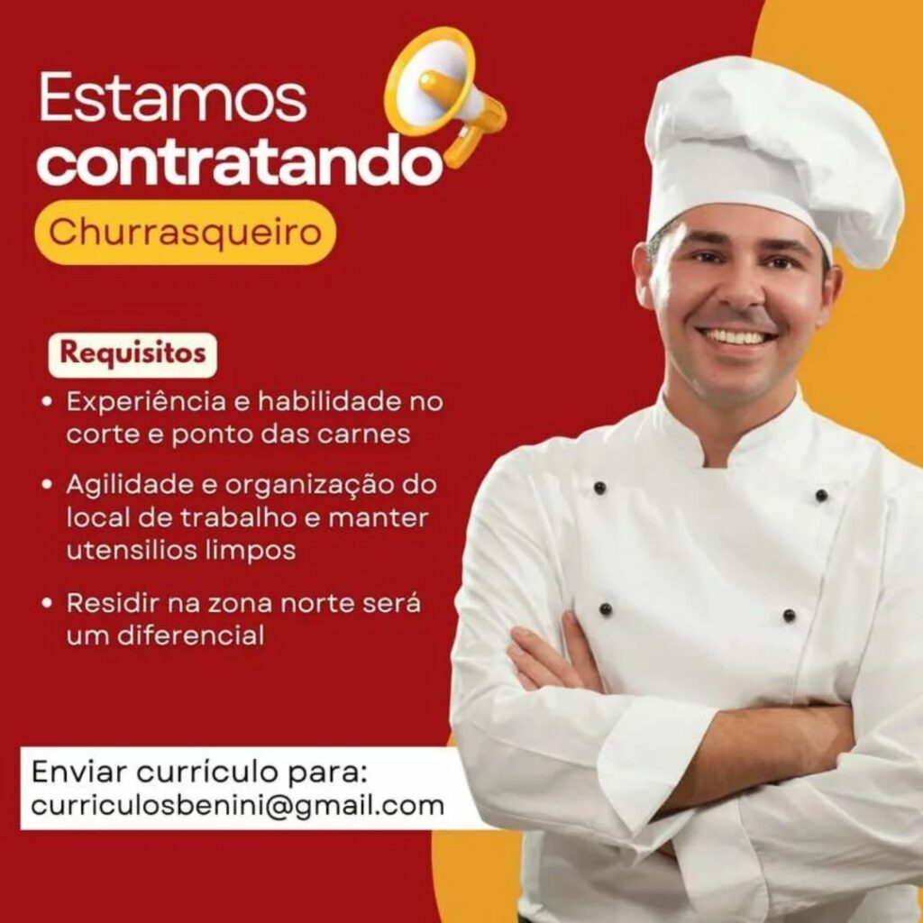 Empresa está selecionando Churrasqueiro; Envie seu currículo!