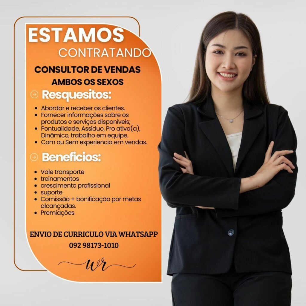Empresa está selecionando Consultor de vendas; Envie seu currículo!