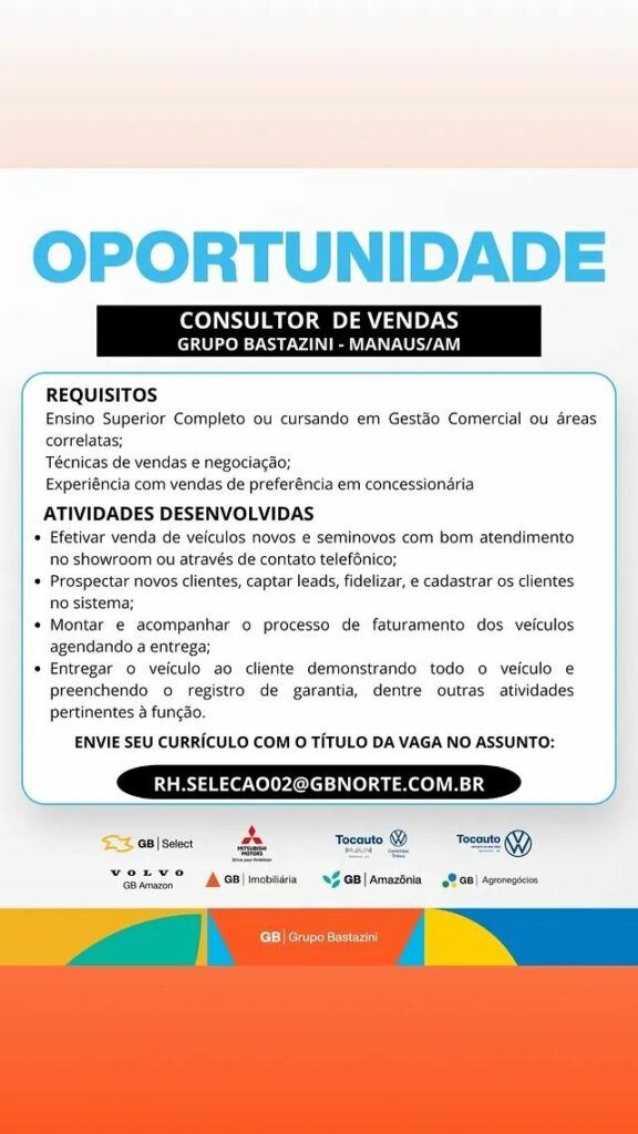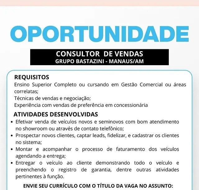 Empresa está selecionando Vendedor; Envie seu currículo!