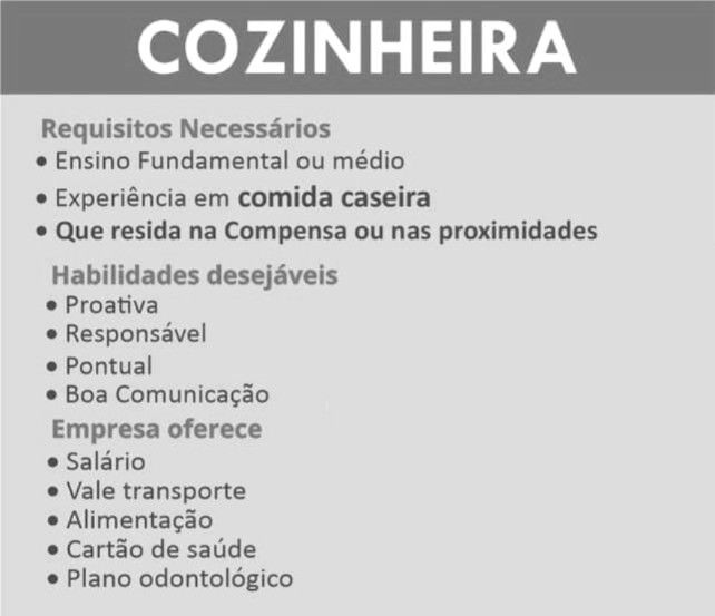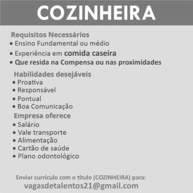 Empresa está selecionando Cozinheira; Envie seu currículo!