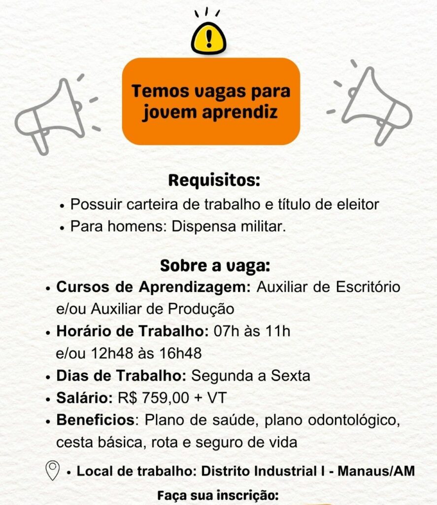 Empresa está selecionando Jovem Aprendiz; Envie seu currículo; Envie seu currículo!