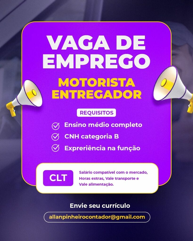 Empresa está selecionando Motorista entregador; Envie seu currículo!
