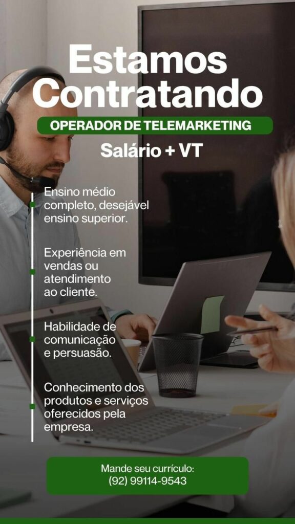 Empresa está selecionando Operador de telemarketing; Envie seu currículo!