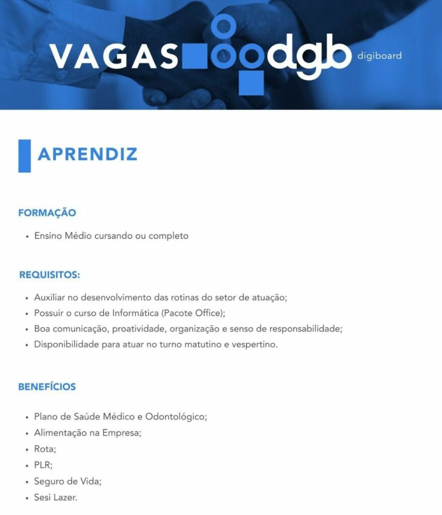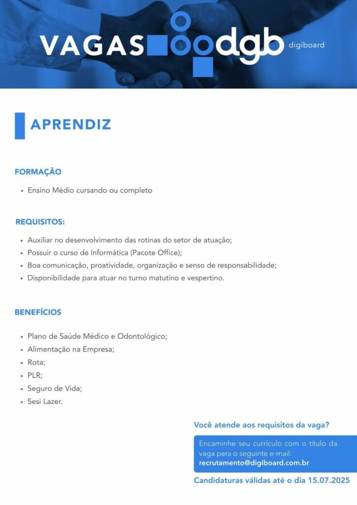Empresa está selecionando para vaga de Aprendiz; Envie seu currículo!
