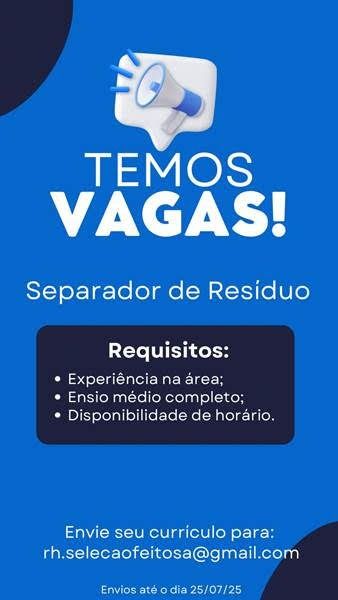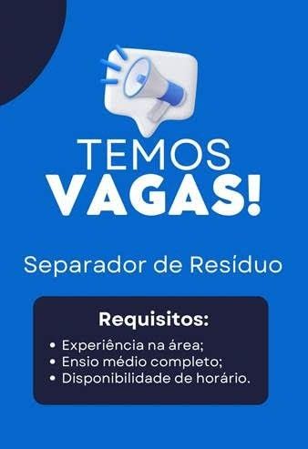 Empresa está selecionando Separador de resíduos; Envie seu currículo!