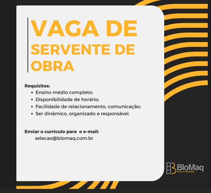 Empresa está selecionando Servente de obra, Estagiário operacional, Estagiário mecânica, Auxiliar de caminhão; Envie seu currículo!