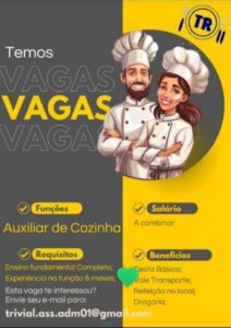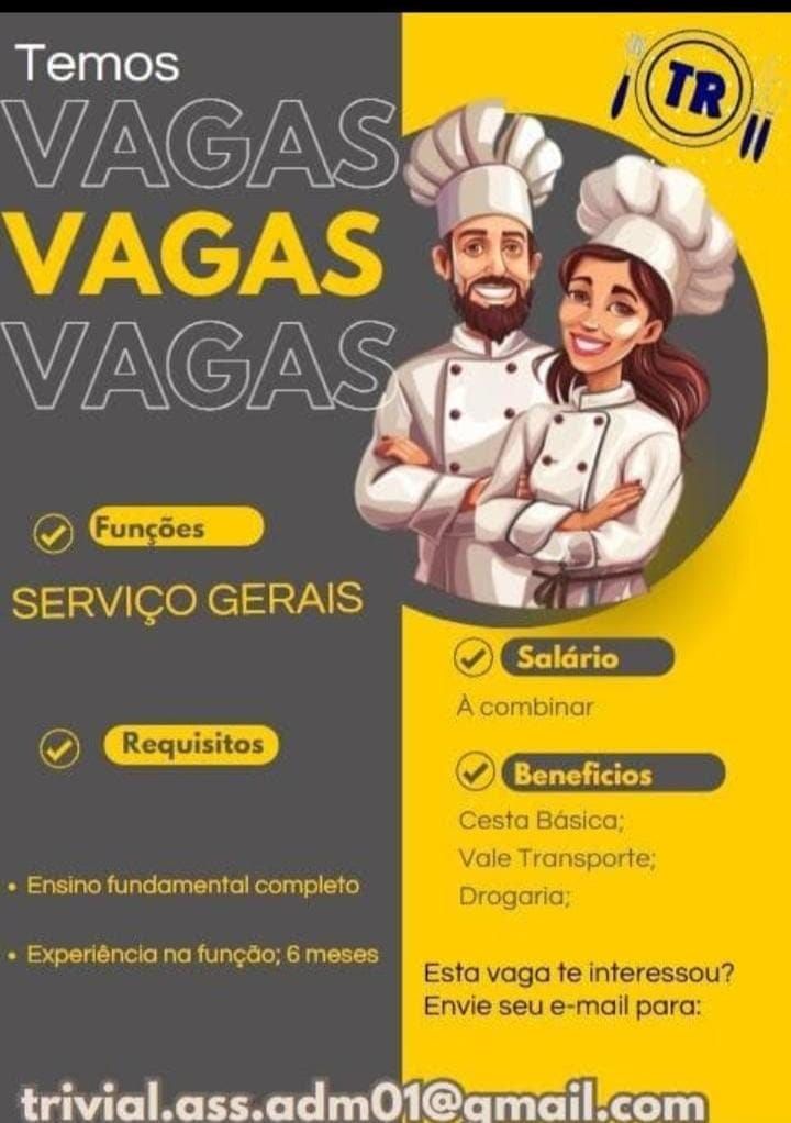 Empresa está selecionando Serviços Gerais, Auxiliar de cozinha; Envie seu currículo!