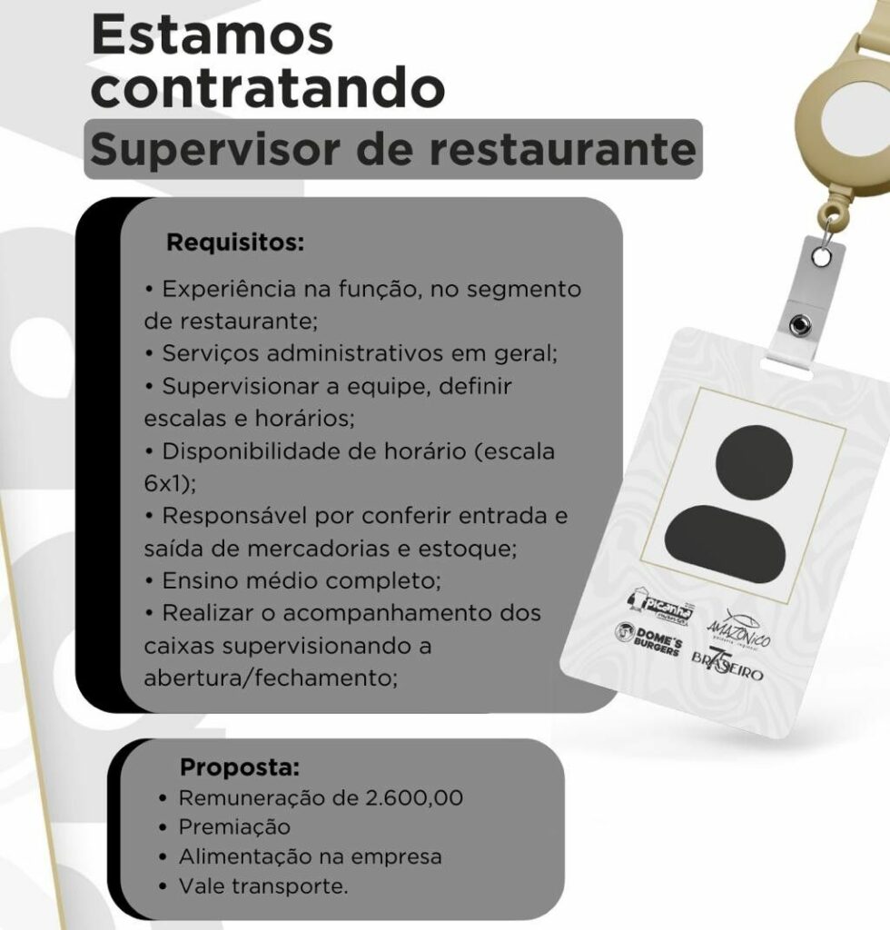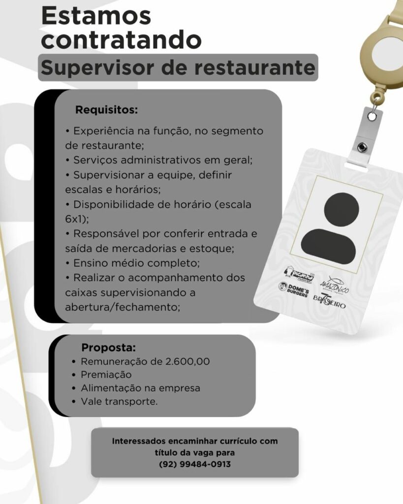 Empresa está selecionando Supervisor de restaurante; Envie seu currículo!