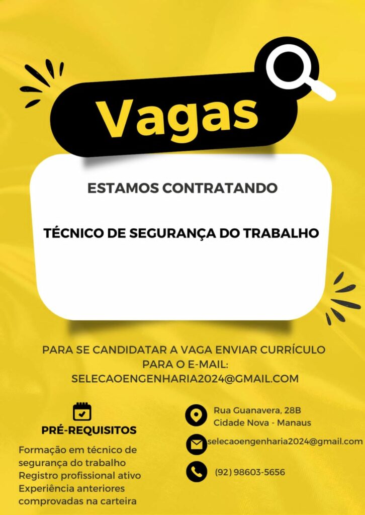 Empresa deseja contratar Técnico de segurança do trabalho; Envie seu currículo!