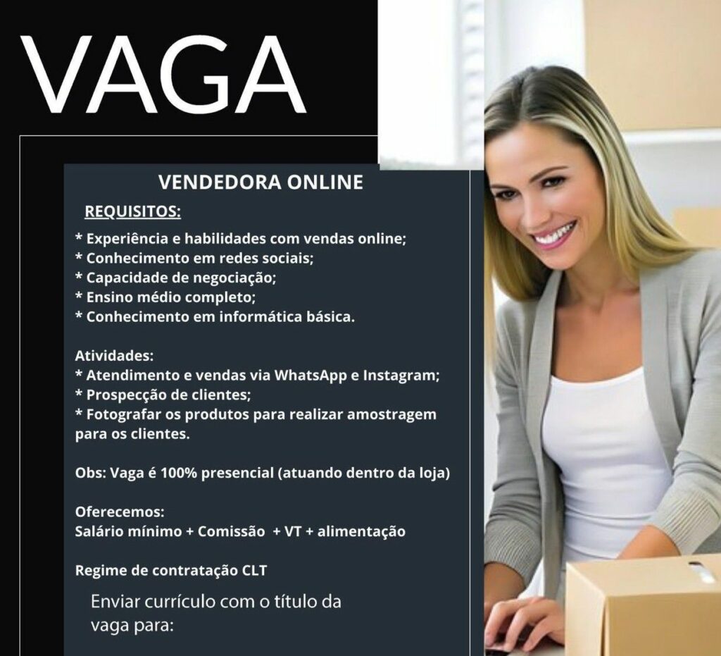 Empresa está selecionando Vendedor on line; Envie seu currículo!