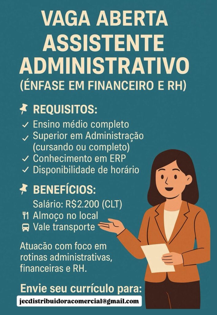 Empresa seleciona Assistente administrativo financeiro; Envie seu currículo!