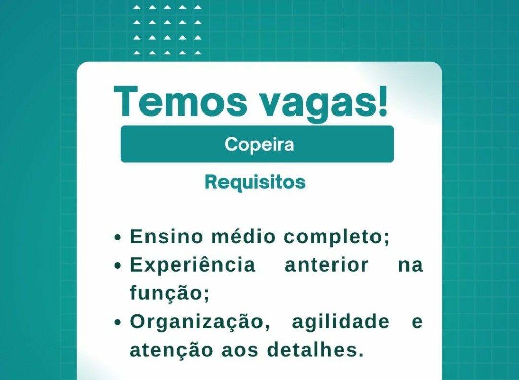 Empresa seleciona Copeira; Envie seu currículo!