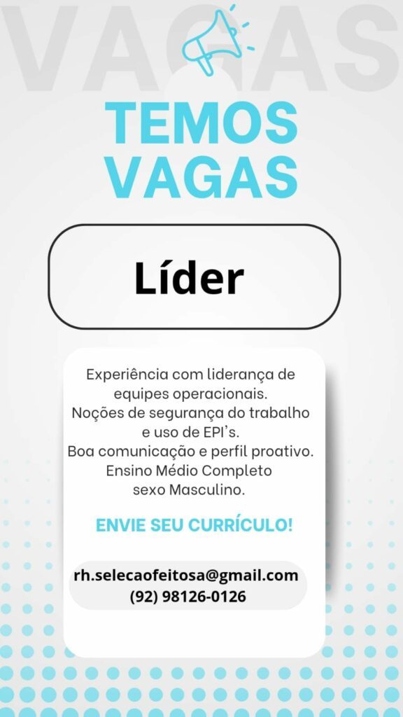 Empresa seleciona para vaga de Líder de produção; Envie seu currículo!